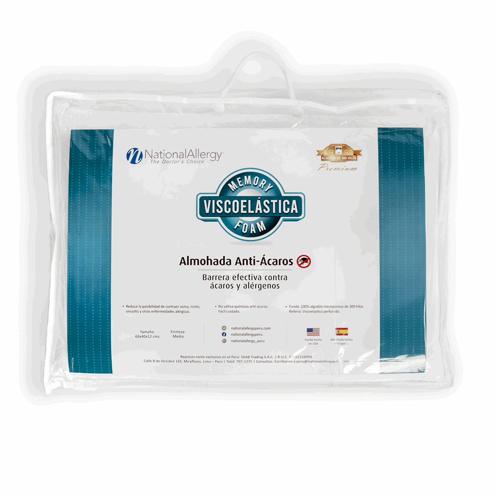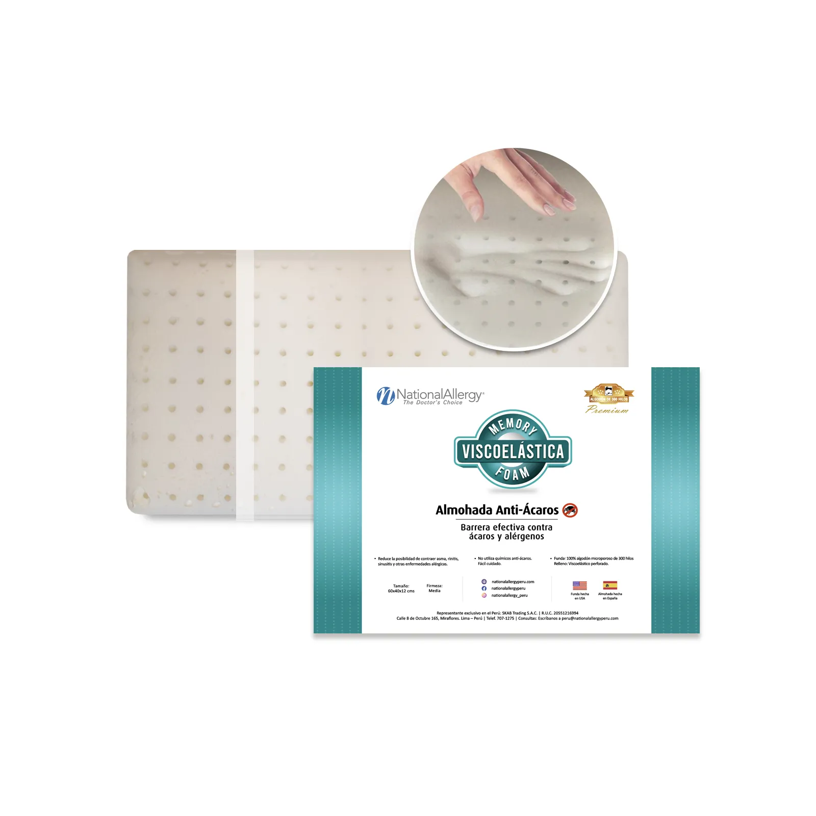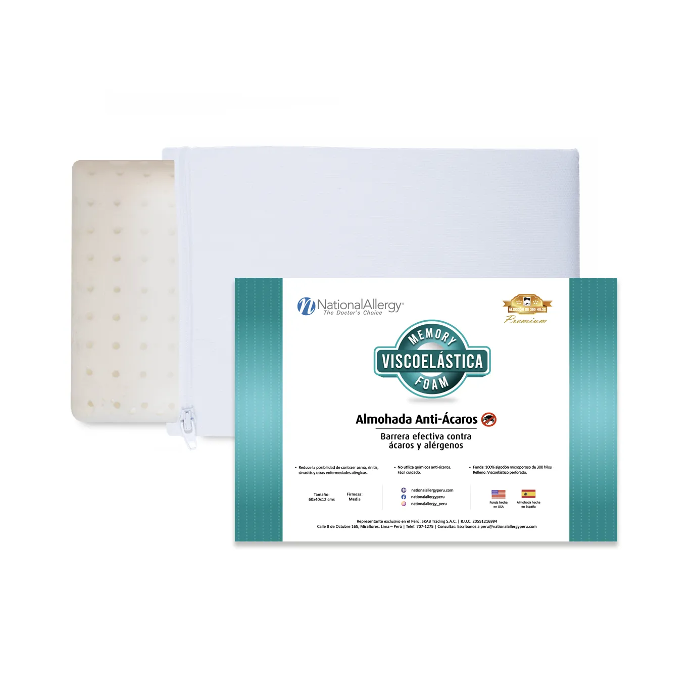 National Allergy nos trae esta almohada de memory foam perforado y cubierta de suave funda extraíble (con cierre) de algodón de 300 hilos micro poroso que impide la acumulación de los ácaros y otros alérgenos, cuidando así nuestra salud.