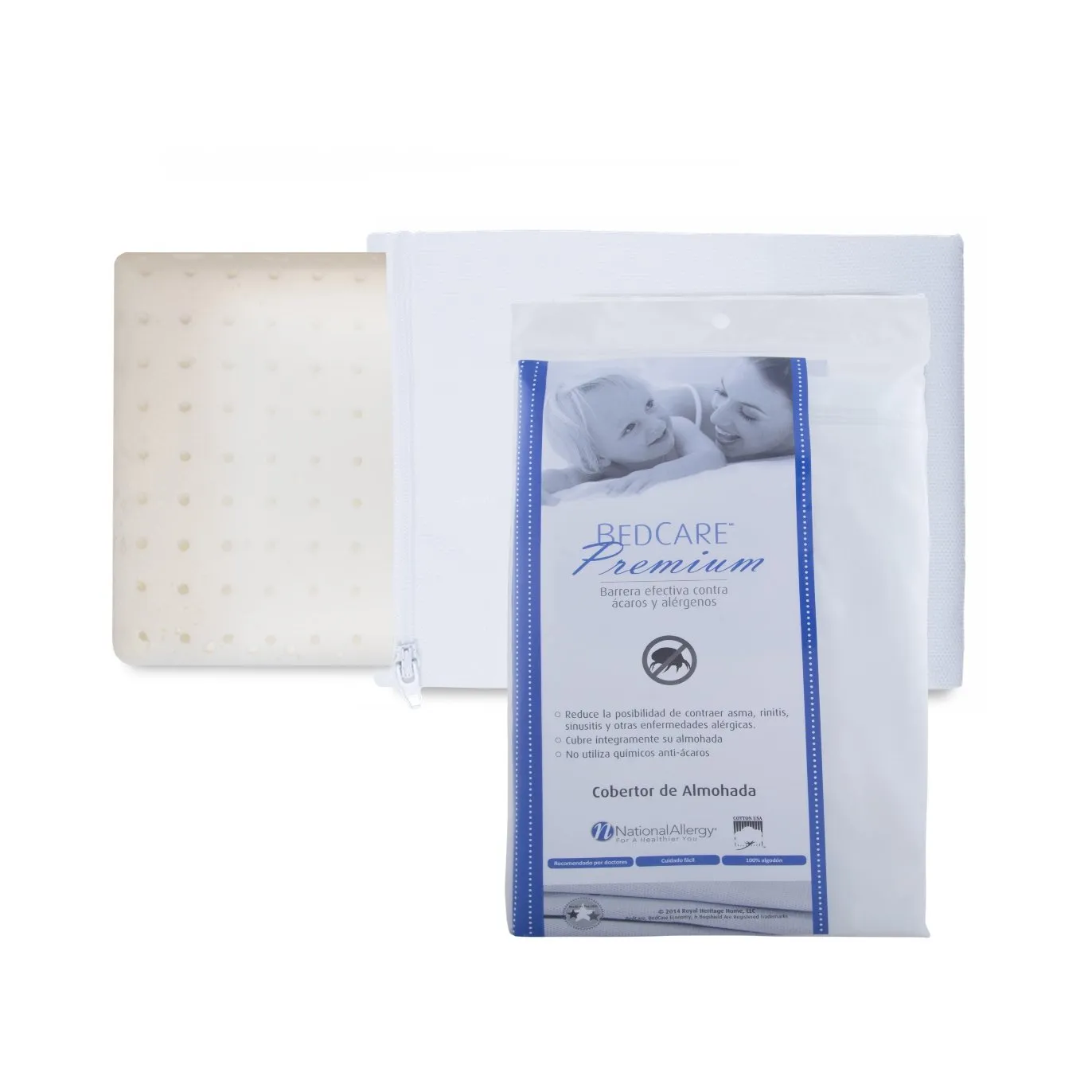 Las telas del protector de almohadas Premium National Allergy son hechas con suave algodón de 300 hilos microporoso, con tamaños de poro de 5 micrones.