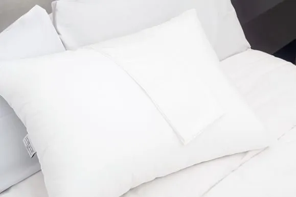Las telas del protector de almohadas Premium National Allergy son hechas con suave algodón de 300 hilos microporoso, con tamaños de poro de 5 micrones.